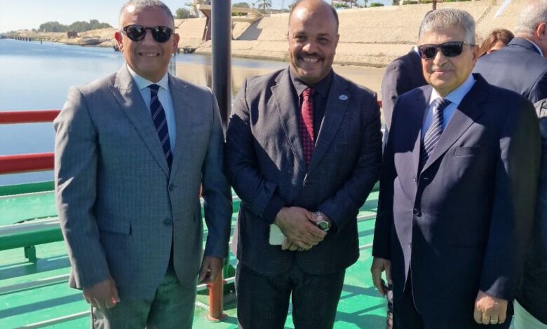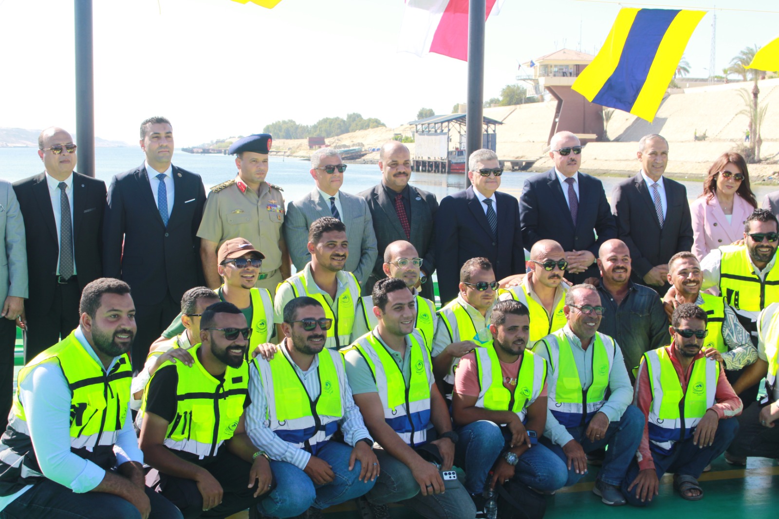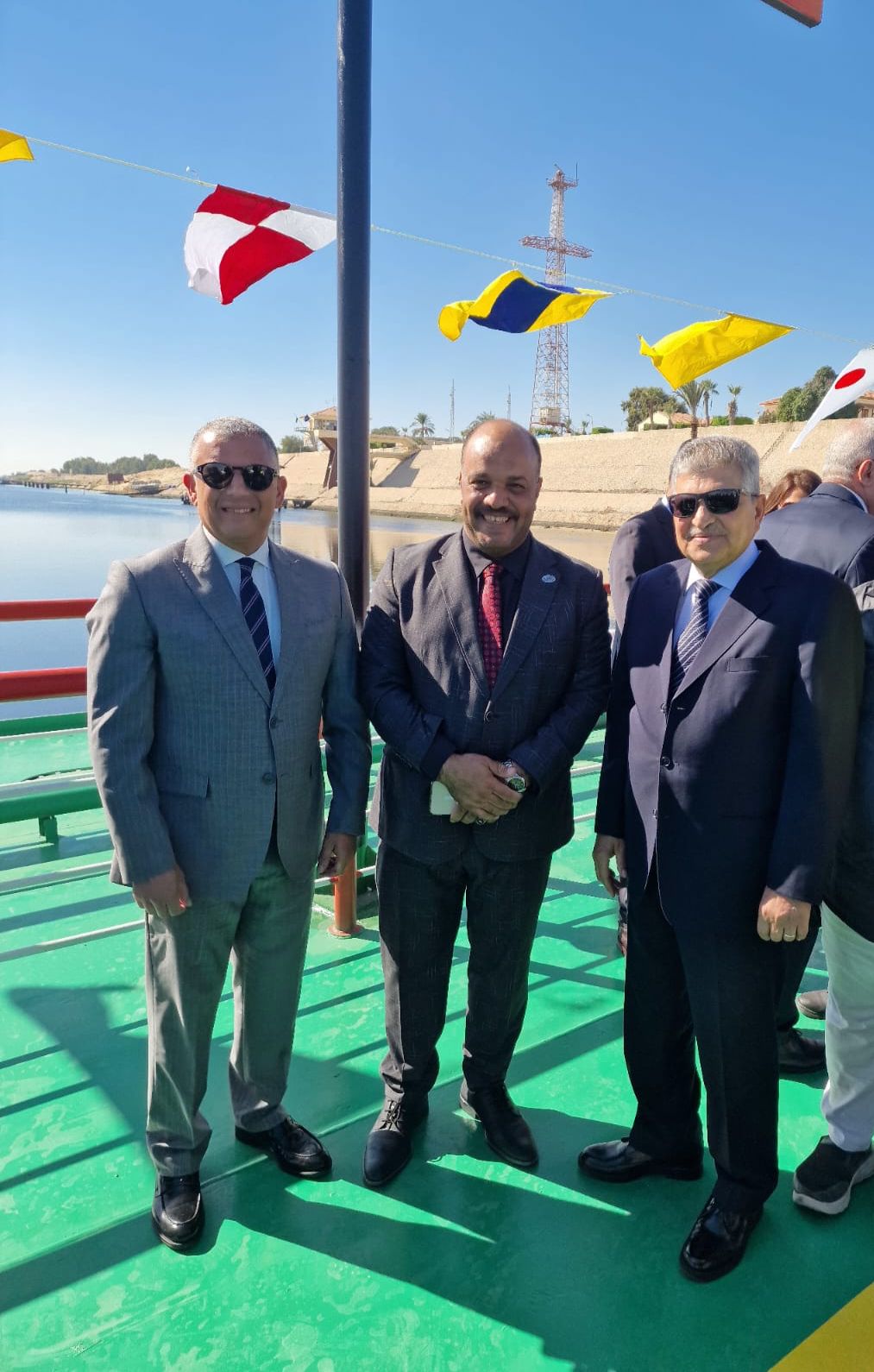 الفريق/ اسامة ربيع رئيس هيئة قناة السويس يمين الصورة اللواء طيار / اكرم محافظ الإسماعيلية يسار الصورة