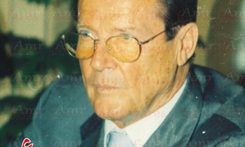 روجر مور الشهير بجمس بوند مع ممدوح البلتاجى وزير السياحة سنة 1998 تصوير عمرو فارس