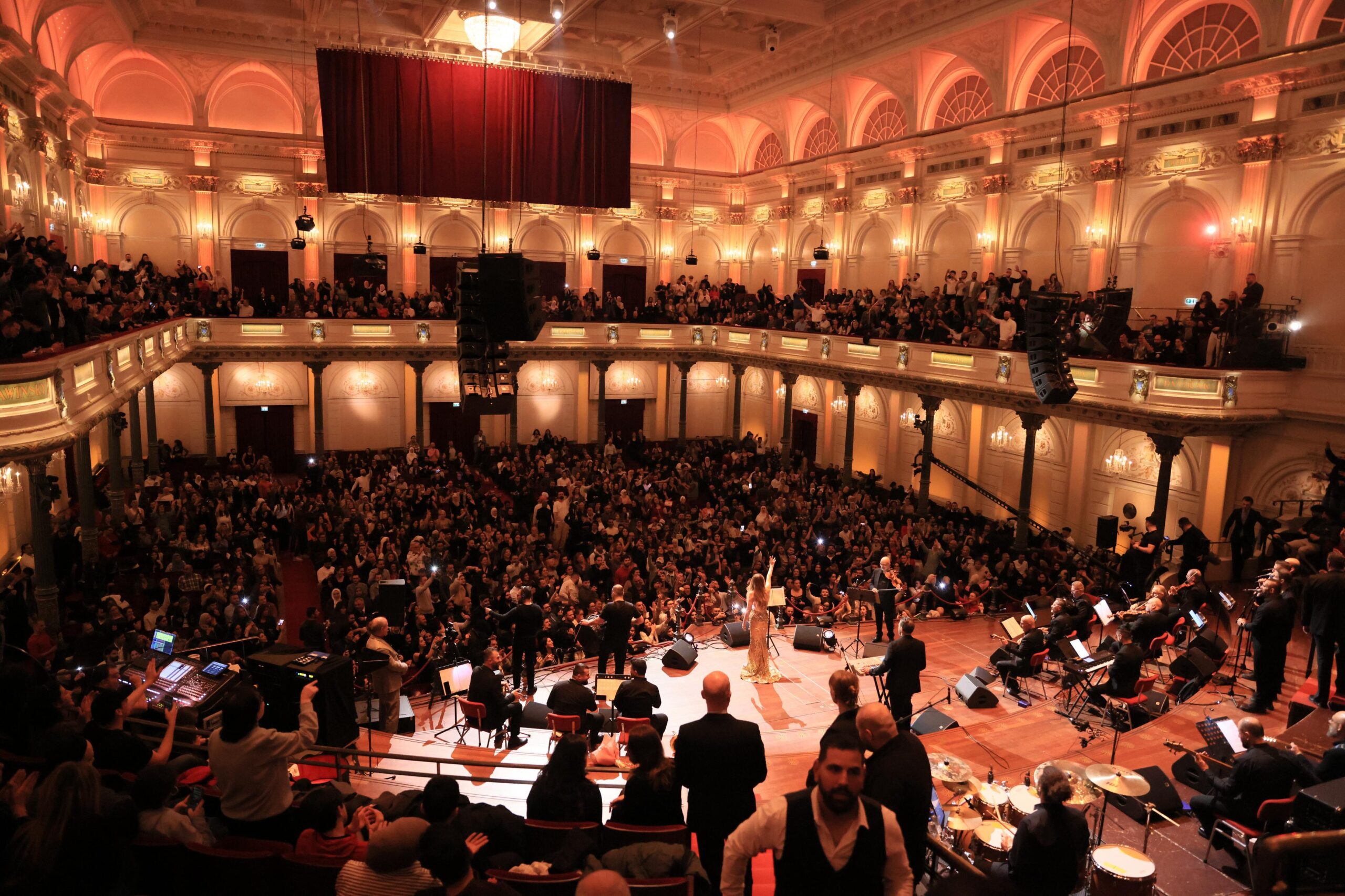 ليلة غنائية استثنائية، قدمتها “شمس الأغنية العربية” الفنانة اللبنانية نجوى كرم في العاصمة الهولندية أمستردام، ضمن جولتها الفنية التي تشمل عدداً من المدن العربية والأجنبية، والتي أقيمت في أشهر القاعات والمسارح وأعرقها في أمستردام، قاعة الحفلات الموسيقية “HET CONCERTGEBOUW”، حيث شهدت إقبالاً جماهيرياً كبيراً، حيث تم بيع جميع التذاكر قبل أيام من انطلاقه، حيث أعلن منظموا الحفل “مومنتس افانتس” عن Sold Out وإكتمال العدد كاملاً.