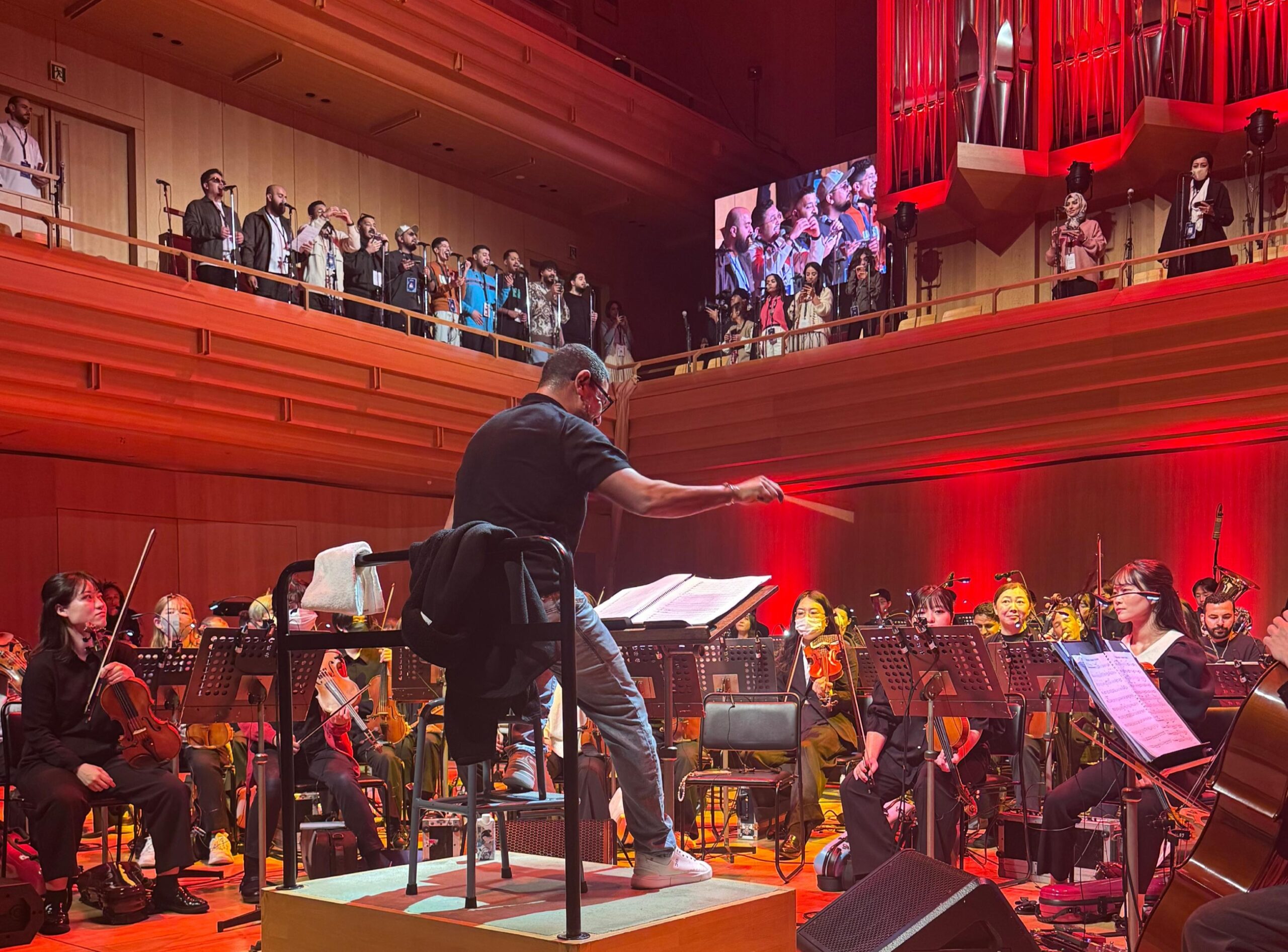 من جانبه، أعرب المايسترو هاني فرحات عن سعادته بقيادة أوركسترا طوكيو الفيلهارموني والأوركسترا السعودي في هذا المزج الموسيقي الذي ضم أكثر من 150 عازفًا، ووصف التجربة بأنها الأولى من نوعها.